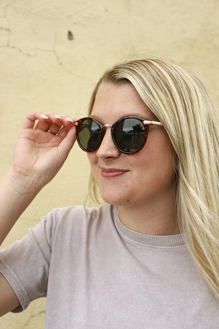 · rounded frame sunglasses with gold accents
