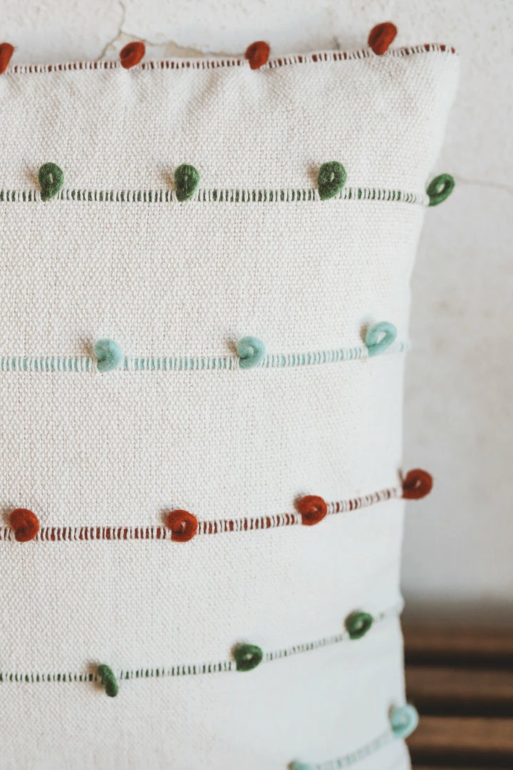 18″ Square Cotton Pillow w/ Embroidery Loop, Multi Color