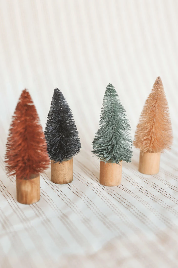 · 4-pack of mini bottle brush trees w/ wood bases