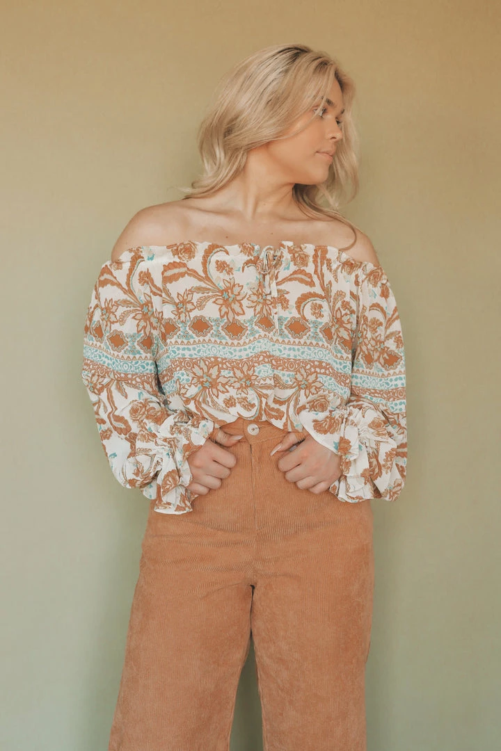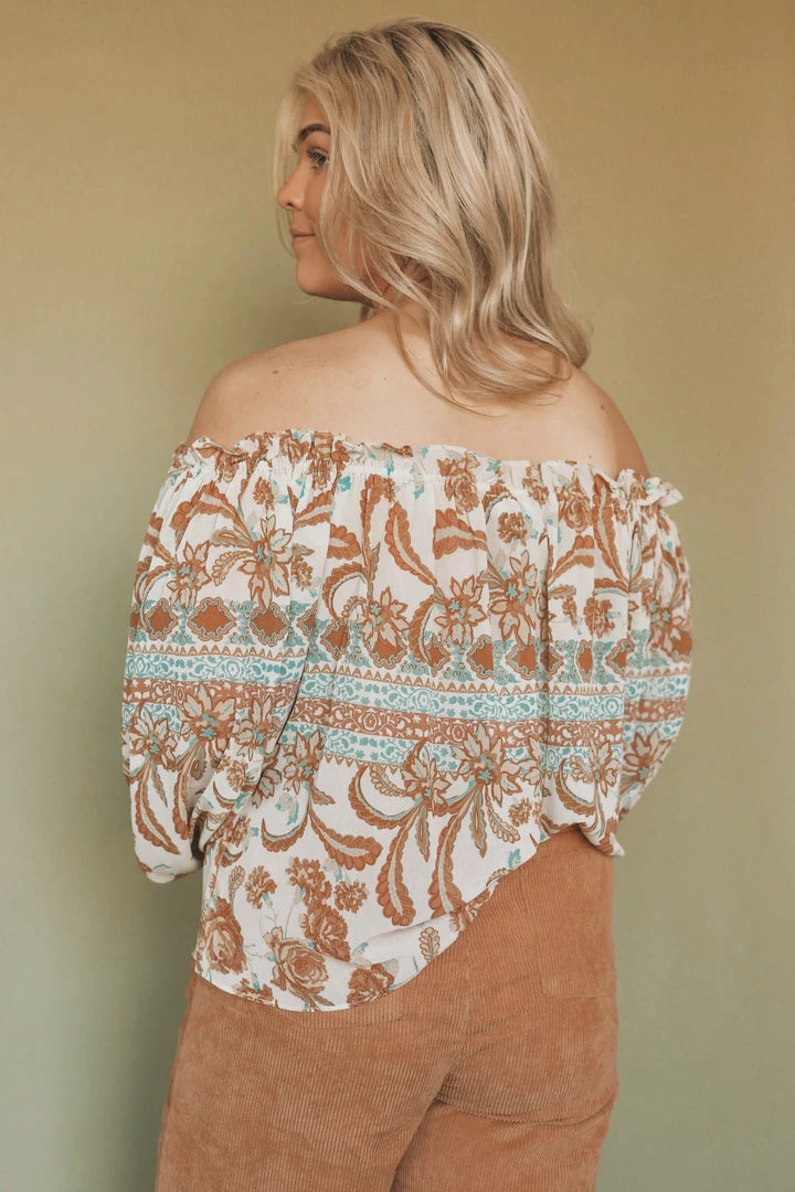 路 printed off-shoulder blouse