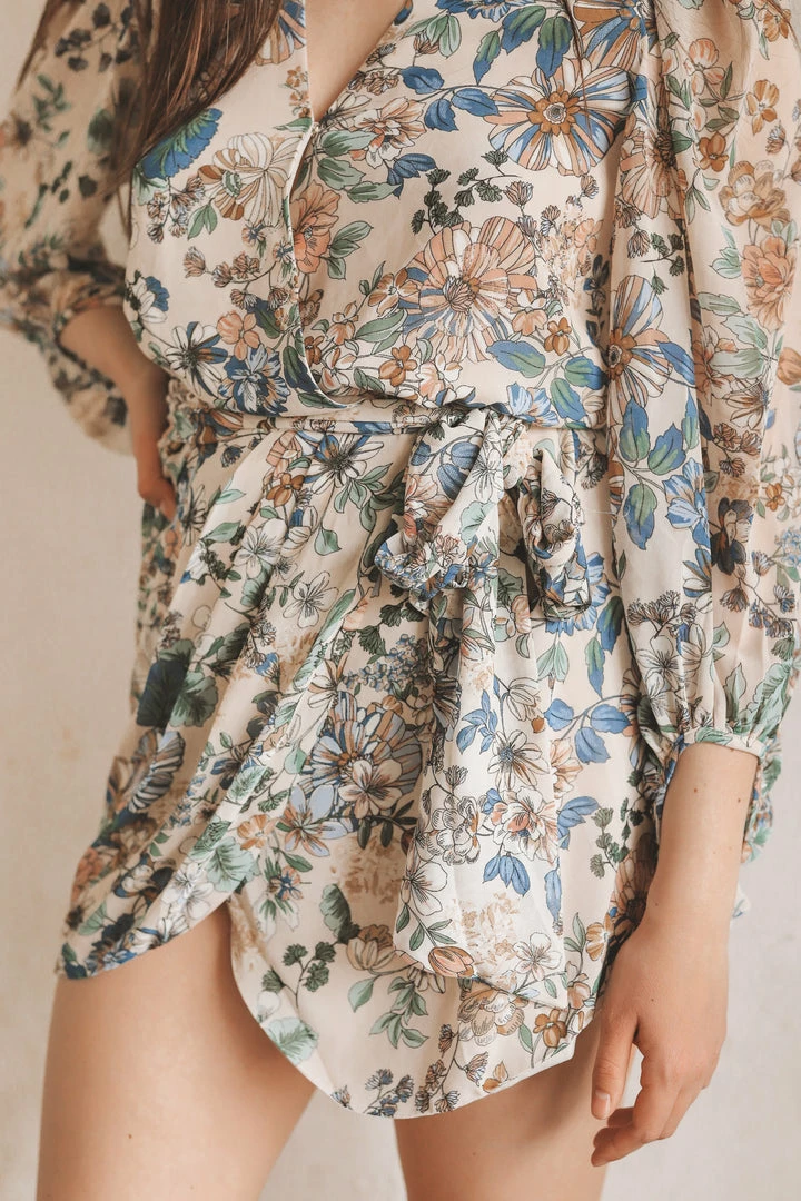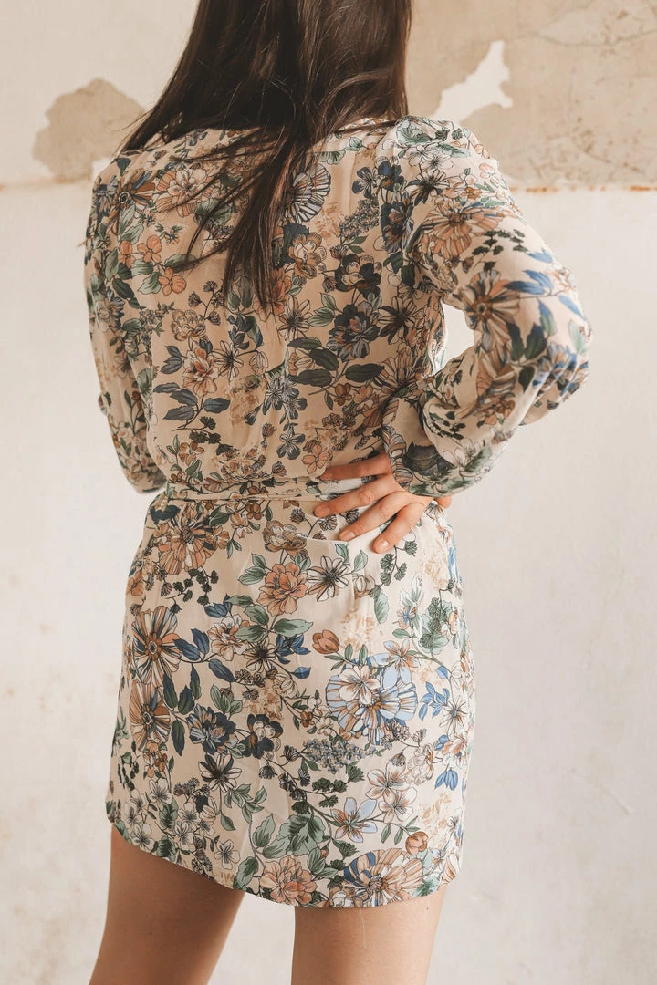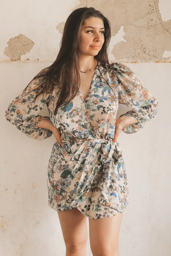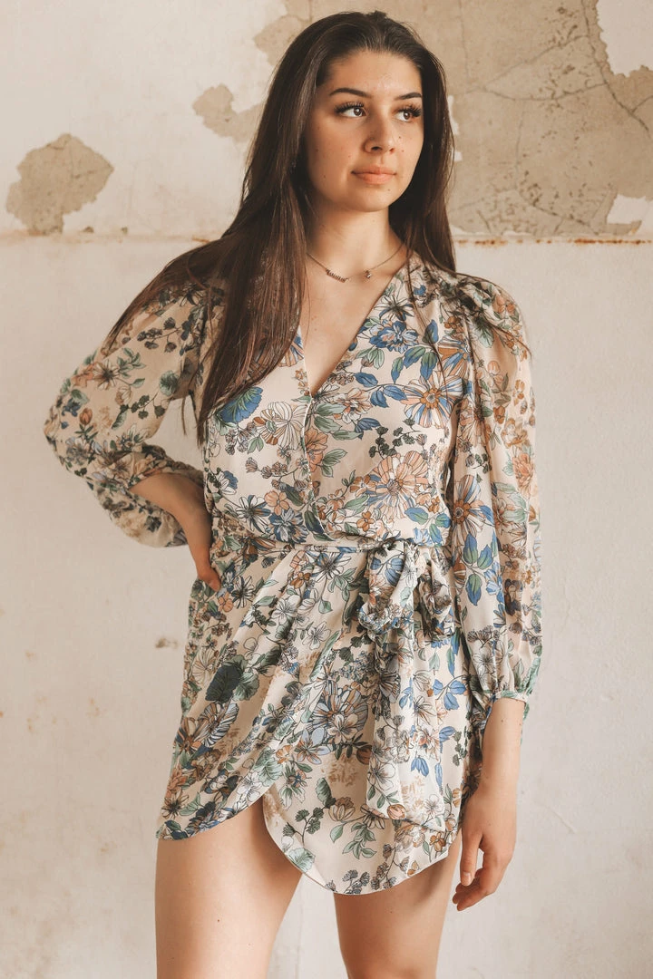 · long sleeve wrap mini dress
