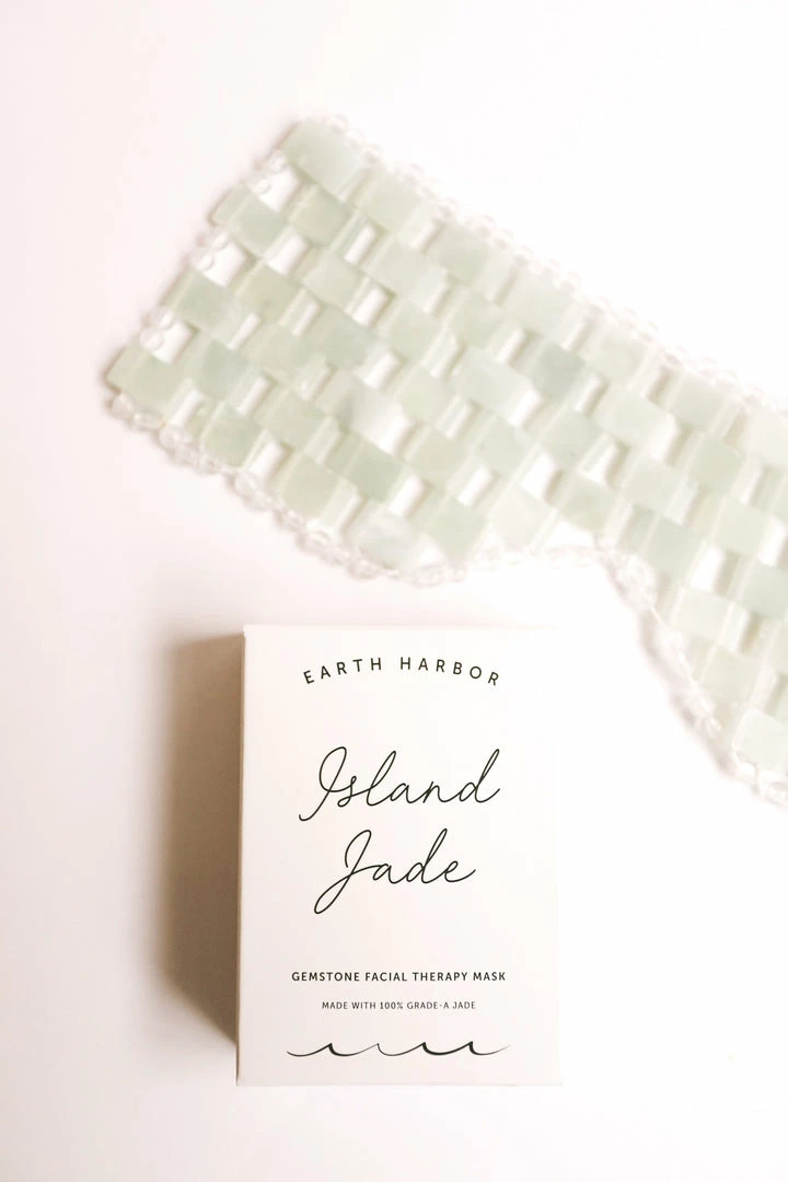 路 jade is believed to have healing and rejuvenating properties, and the intricately handwoven pattern of jade stones features a cooling, calming, weighted design that can help minimize the look of dark circles, puffiness and wrinkles, as well as relieve sinus pressure