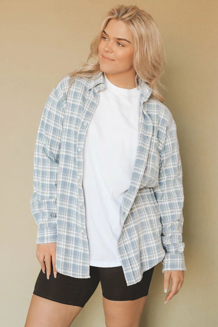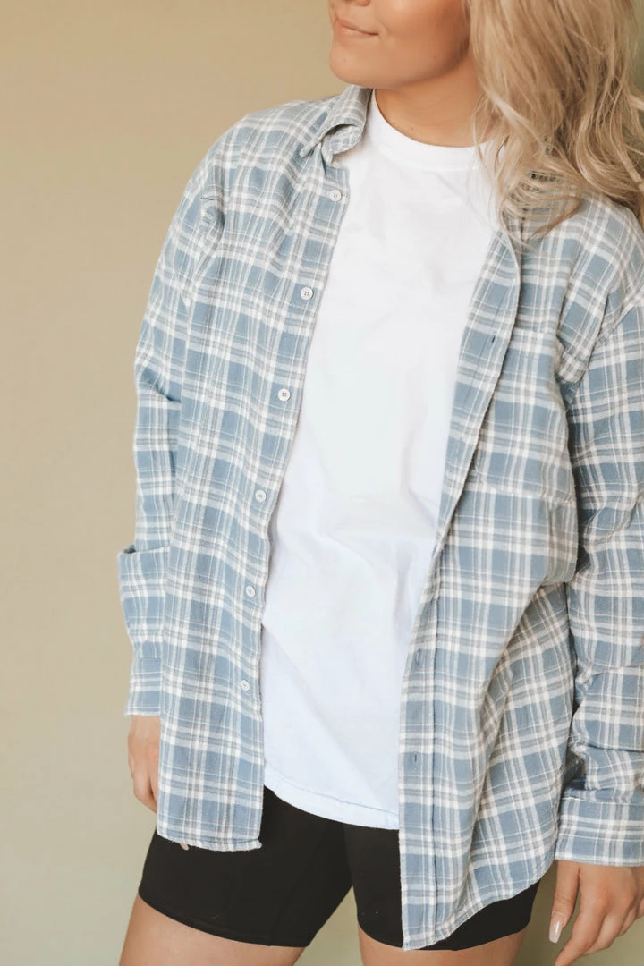 · oversized plaid button-up