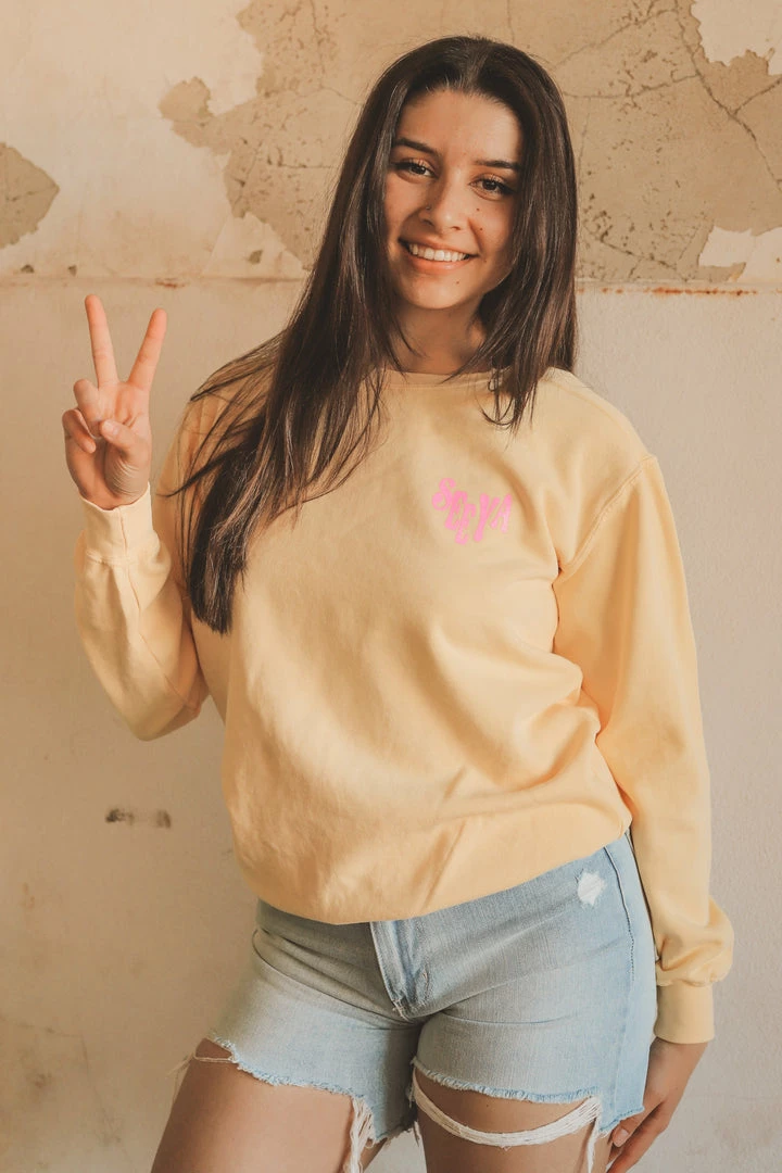 · butter-colored graphic crewneck