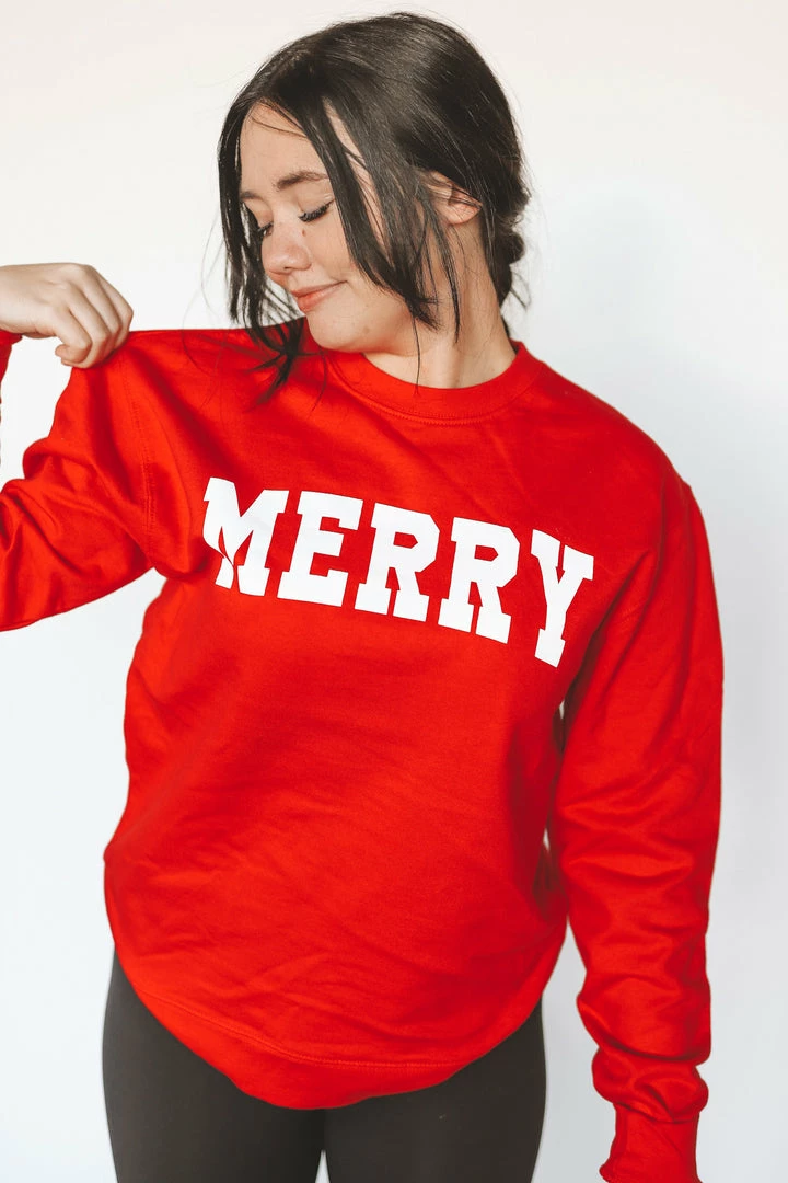 · printed “MERRY” crewneck