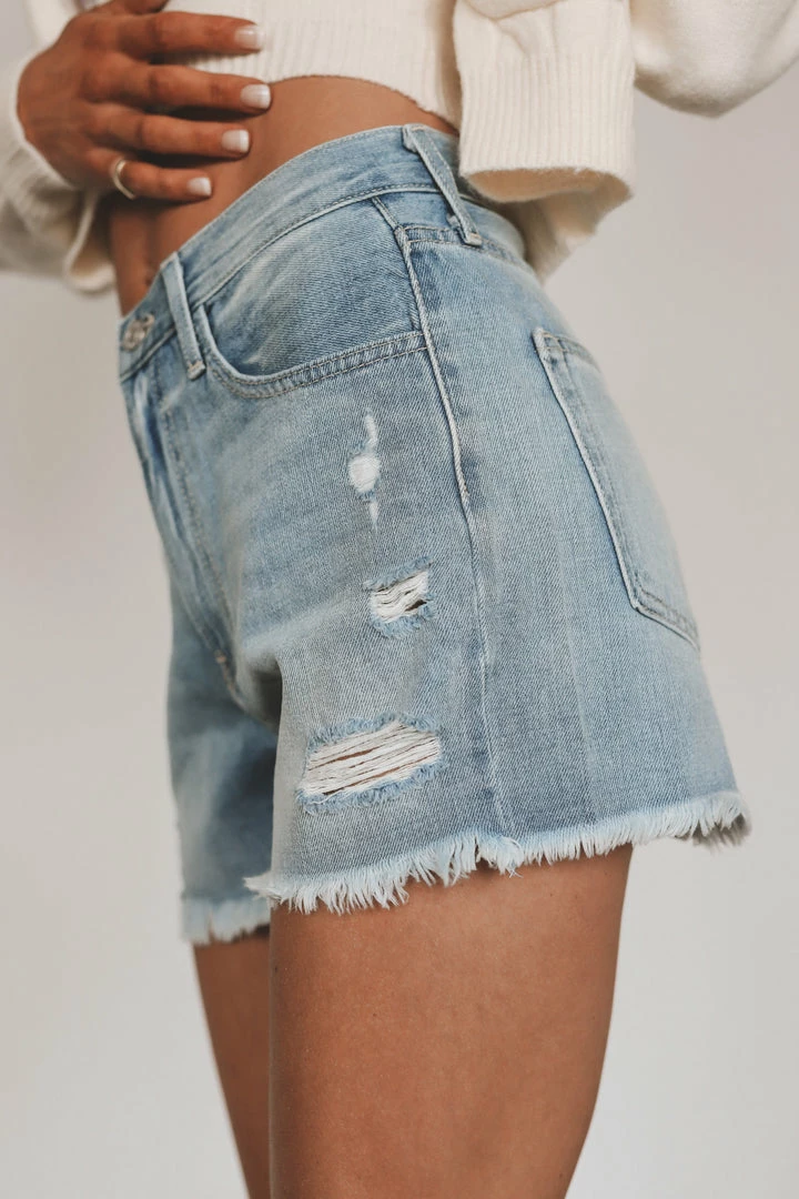 路 classic distressed denim shorts