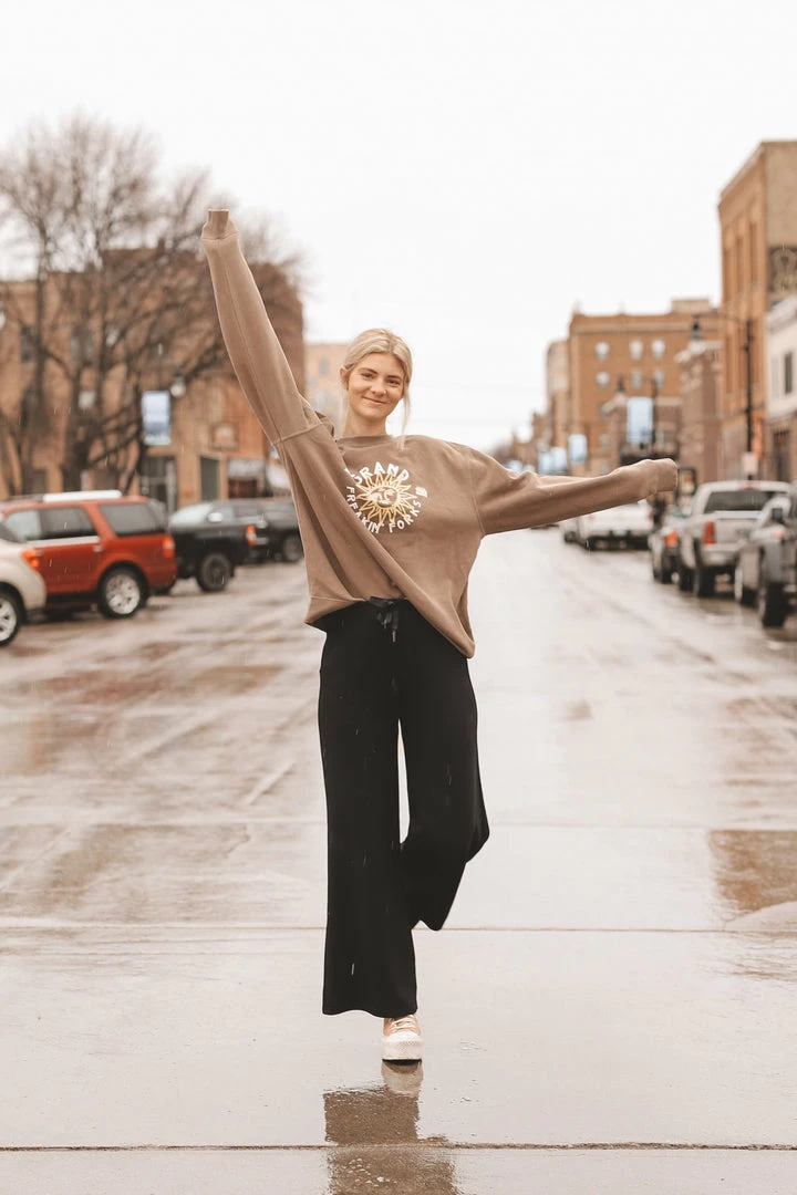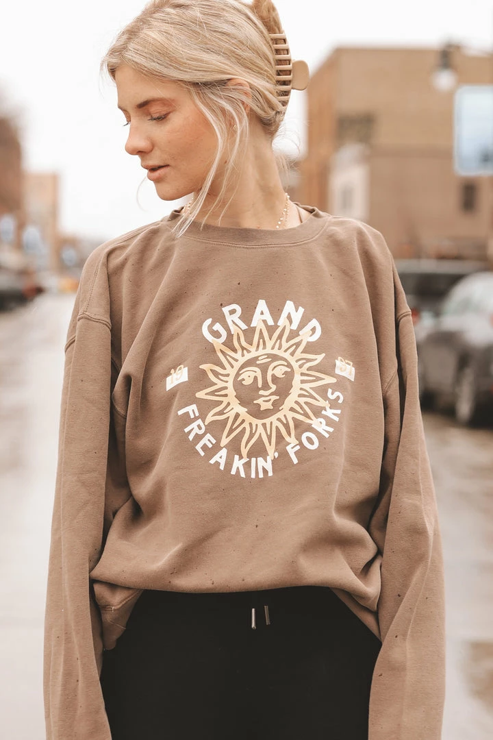 · garment-dyed, vintage washed brown crewneck sweatshirtÂ