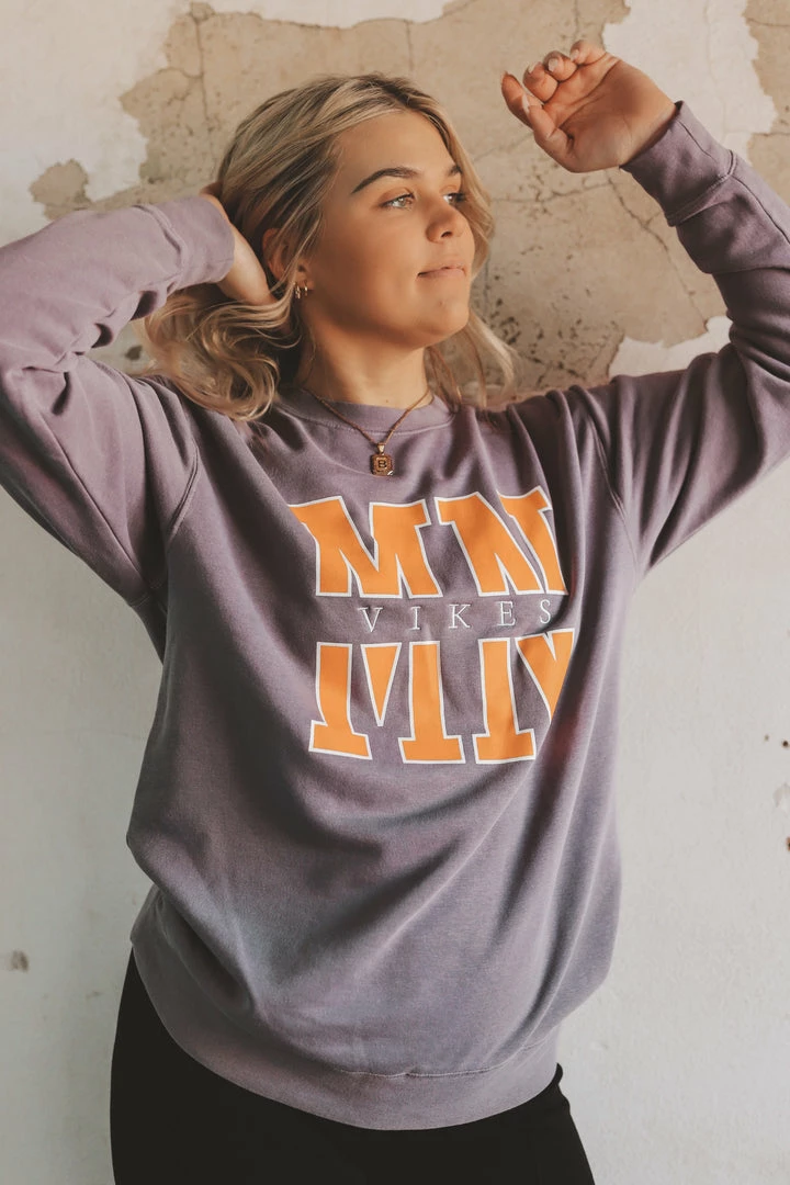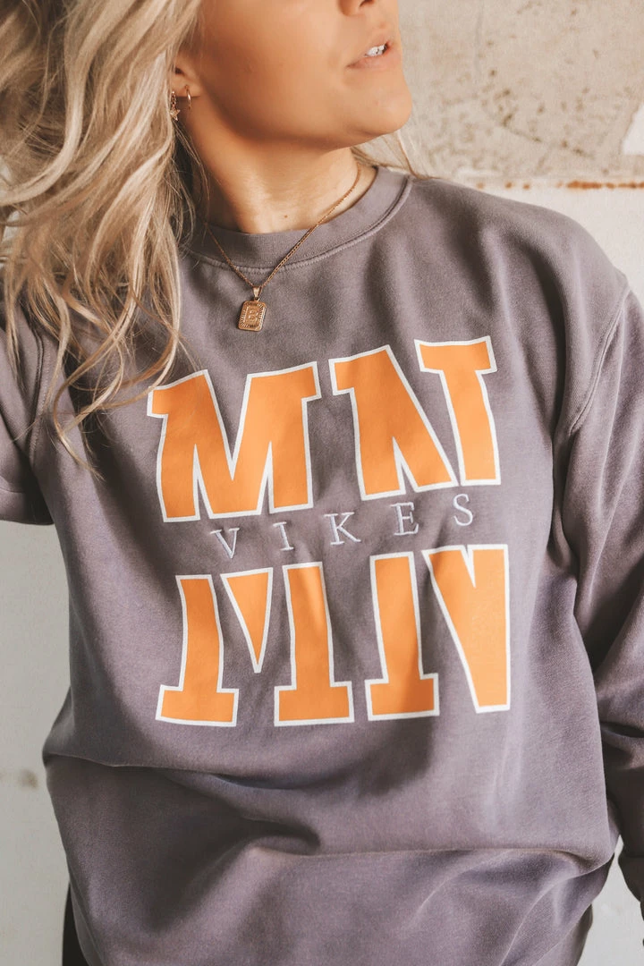 · embroidered “vikes” with screenprinted “MN”