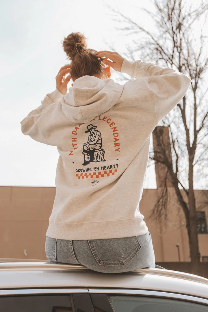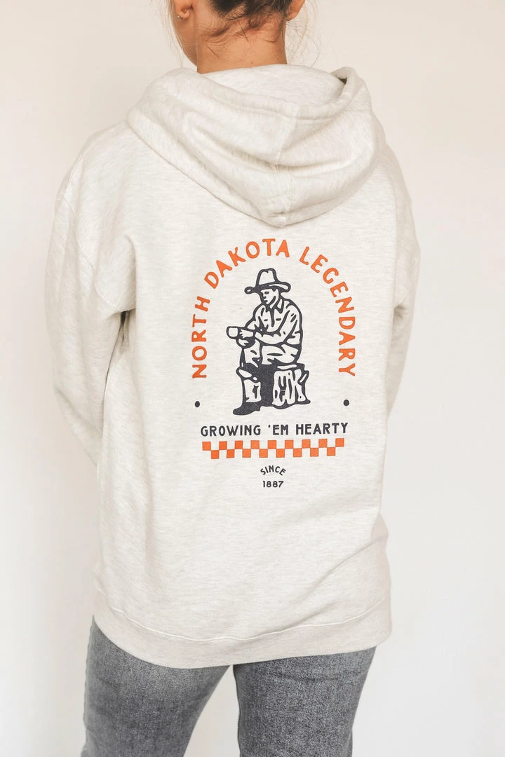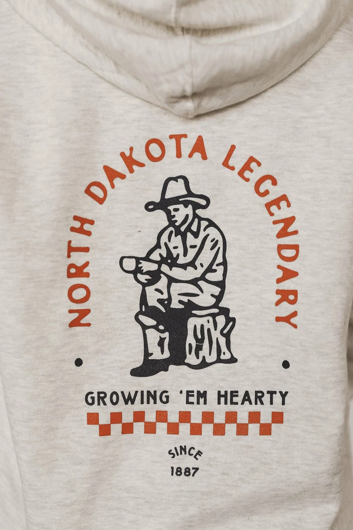 · “north dakota legendary” · “growing ’em hearty” · “since 1887” w/ cowboy coffee graphic printed design on back