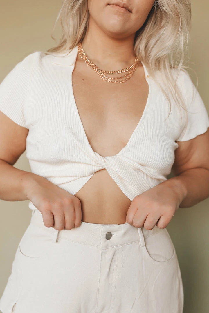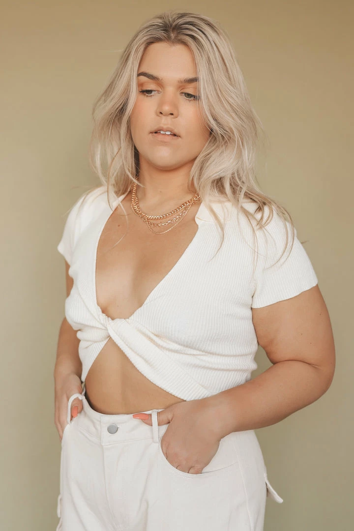 路 collared crop top