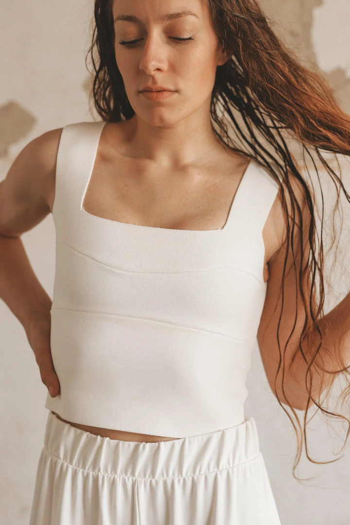 · style tip: wear with loose fitting bottoms for a contrasting silhoutte
