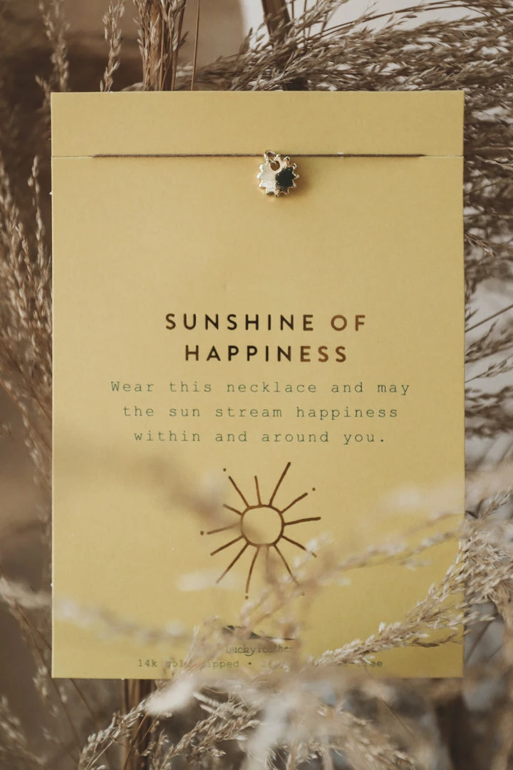 路 packaging reads: “sunshine of happiness”, “wear this necklace and may the sun stream happiness within and around you”