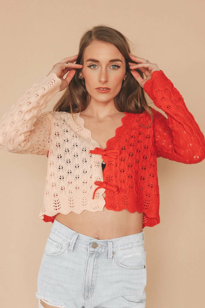 · colorblocked crochet cardigan