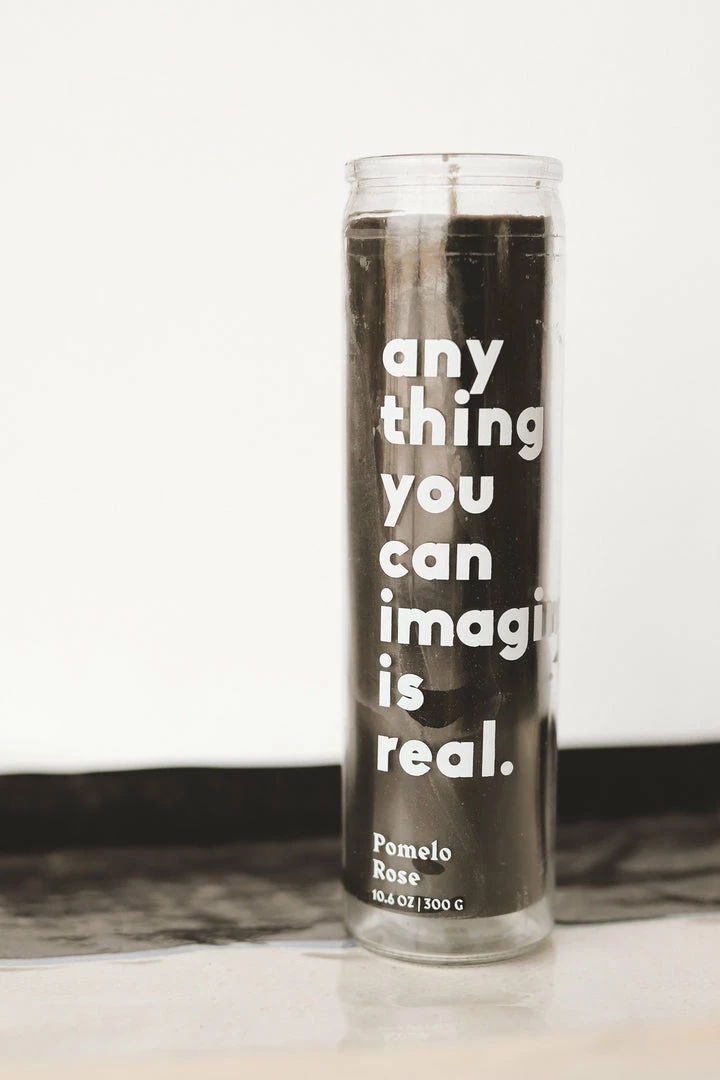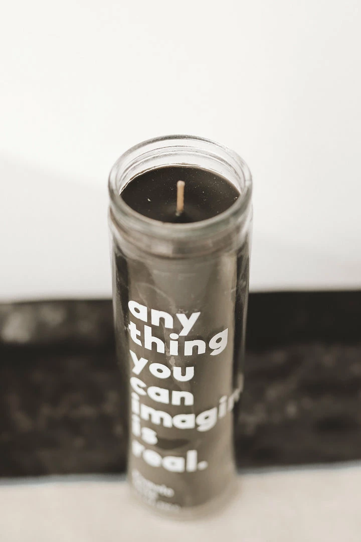 · “any thing you can imagine is real” white printed jar