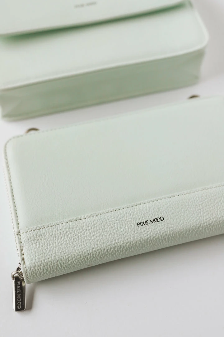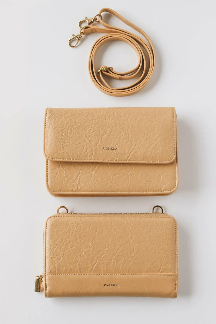 · detachable wallet portion includes card slots a zip compartment a phone compartment + bill slot