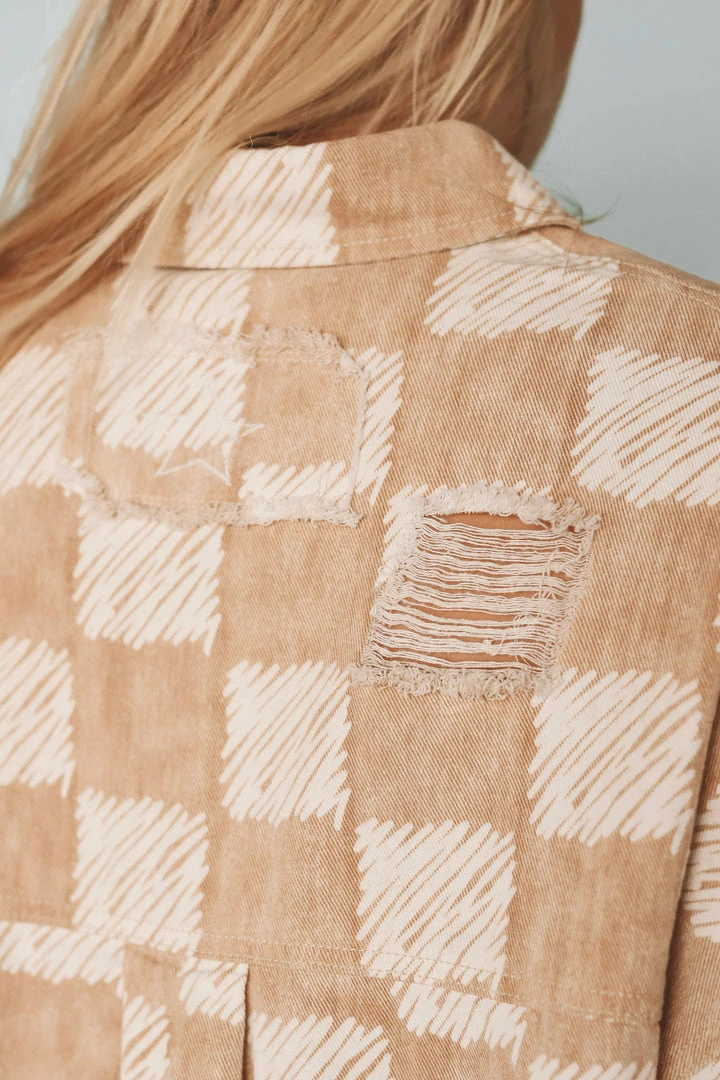 路 scribble checkerboard printed button-up shirt