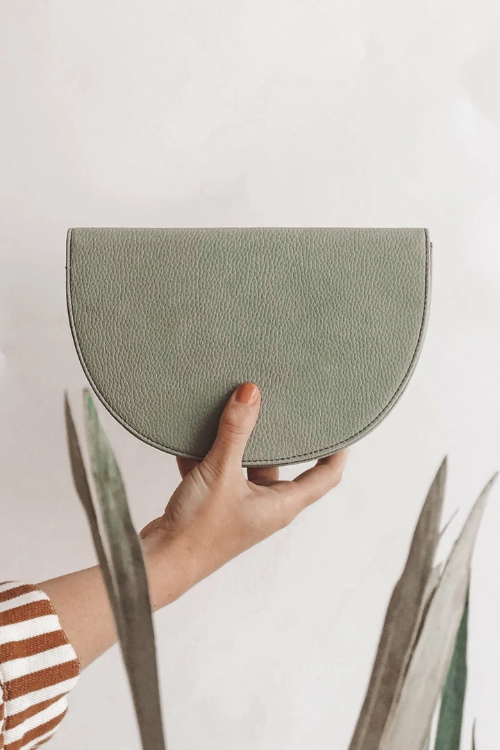 · L 8.5″ × W 2″ × H 5.5″ pebble grain vegan leather