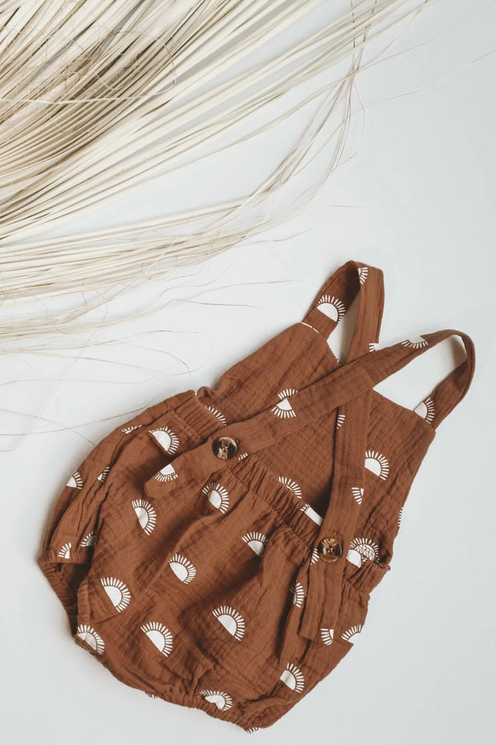 路 textured romper with sun set print